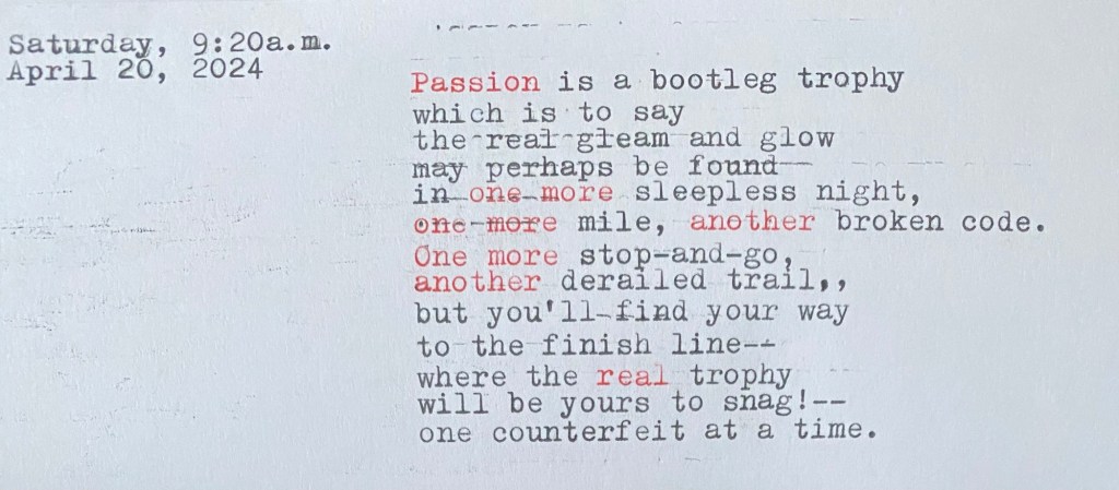 Passion is a Bootleg Trophy (Getting Back to my Poetic Roots)